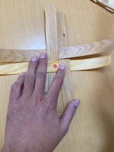 二枚の板を組み合わせた時には、洗濯ばさみを使って止めるという工夫もしています。
