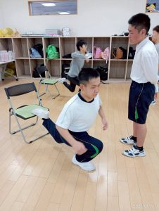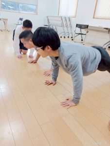 筋トレ班では基礎的なトレーニングから始まり、徐々に難易度が上がっていく筋トレプログラムに
