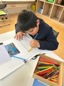 写真を見ながら上手に模写出来ている子がいれば、独特な世界観を絵に表して描いている方も👏👏👏
