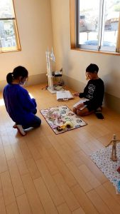 それぞれ自分のスペースに商品を並べて、自分のお店を作っていきます。