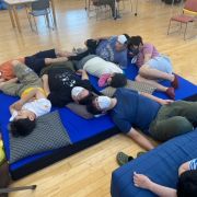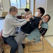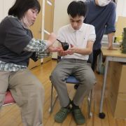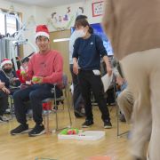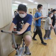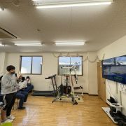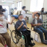 利用者の方々のニーズや健康増進に向け、ウォーキングや筋力トレーニング等実施しています。運動器具も充実しており、懸垂器具やジョウバ・ウォーキングマシン・バランスボール・ダンベル等を使用して身体を動かしています。又、スポーツ活動の際には地元企業の体育館を利用させて頂き、ソフトバレーボールやバスケット等々広い場所で体を思いきり動かしています。